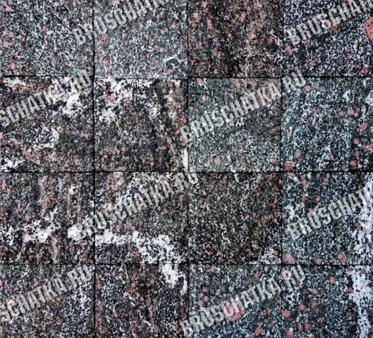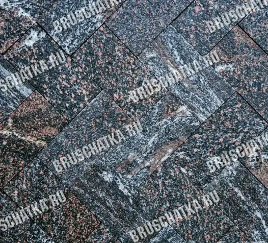 Пиленая брусчатка из гранатового амфиболита — каменная брусчатка с заданной геометрией и выразительным природным рисунком. Камень распиливается со всех сторон, благодаря чему элементы имеют одинаковую форму и позволяют выполнять укладку с минимальным швом. Гранатовый амфиболит отличается тёмной основой с характерными красными вкраплениями граната. За счёт этого поверхность выглядит контрастно и хорошо читается даже на большой площади.