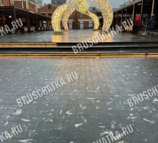 В пиленом формате рисунок камня становится более упорядоченным, а контраст между тёмной основой и включениями усиливается. Покрытие получается выразительным, но при этом аккуратным за счёт точной геометрии элементов. Такой материал выбирают, когда требуется не просто мощение, а визуально акцентное покрытие с индивидуальным характером.