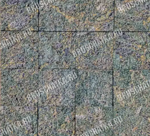 Сопка Бунтина отличается сложной зелёно-серой гаммой с природной неоднородной структурой. В цвете сочетаются зелёные, серые и бежево-жёлтые оттенки, за счёт чего поверхность выглядит “живой” и не повторяется на большой площади. Структура камня пёстрая и естественная, без строгой равномерности. В пиленом формате покрытие сохраняет природный характер, но при этом выглядит аккуратно за счёт точной геометрии элементов.